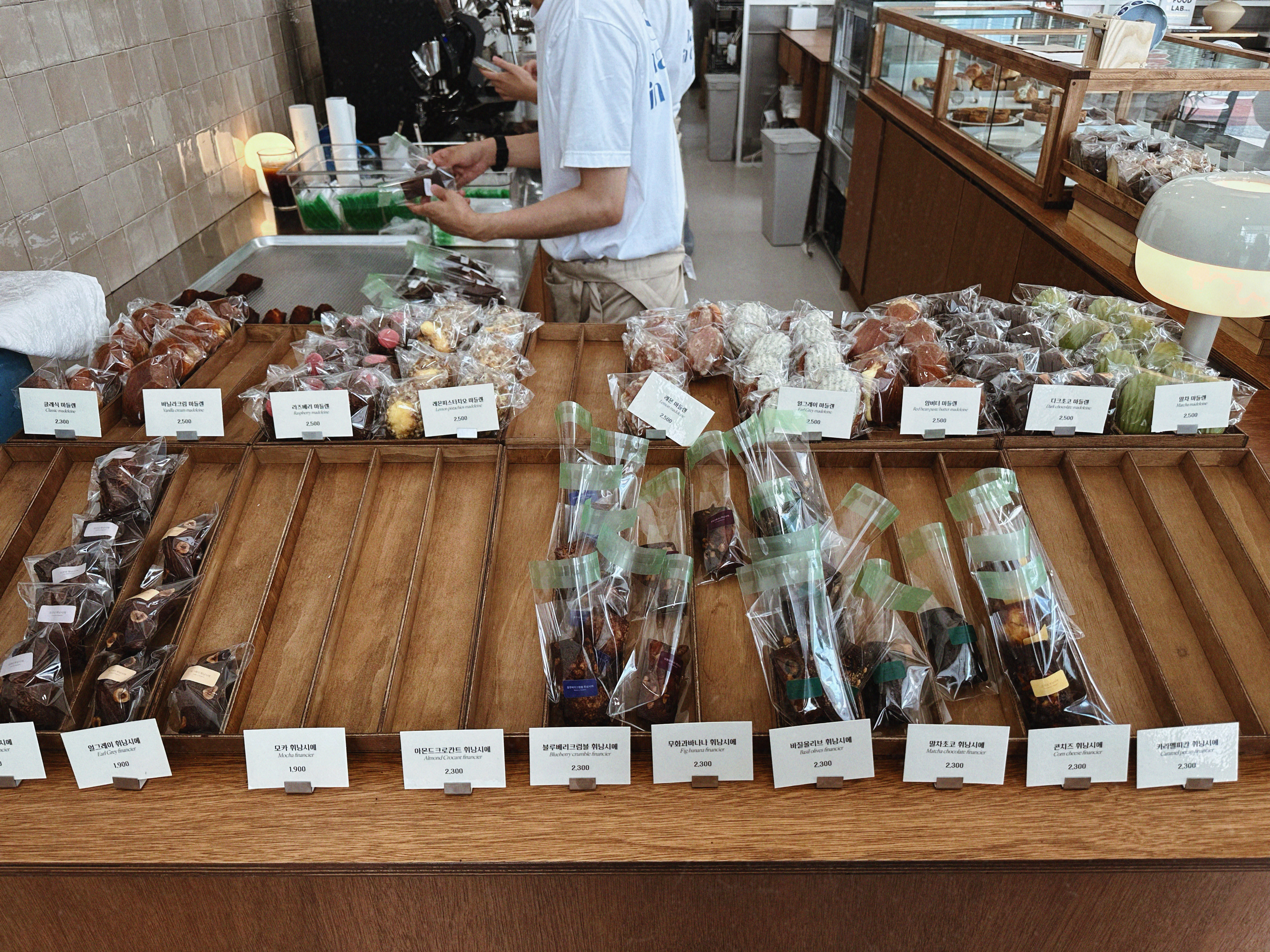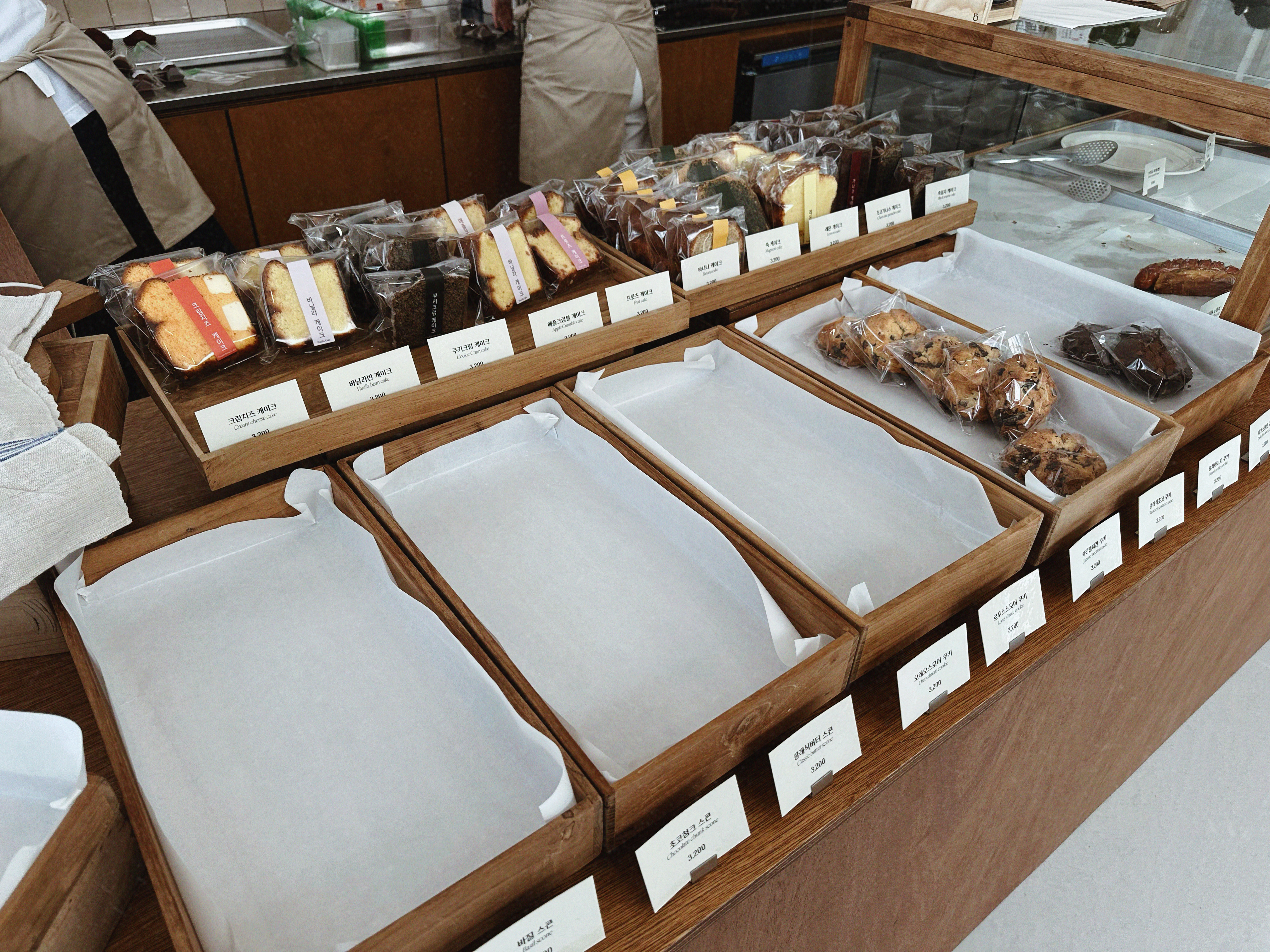 내부에 들어가면 넓진 않지만 좌석이 몇 개 준비되어 있었고, 무엇보다 매장 전체가 정돈된 느낌이라 첫인상부터 합격! 동네 빵집 특유의 친근함과 함께, 파티시에의 정성이 가득한 진열대에서 빵 고르는 재미가 있었습니다.