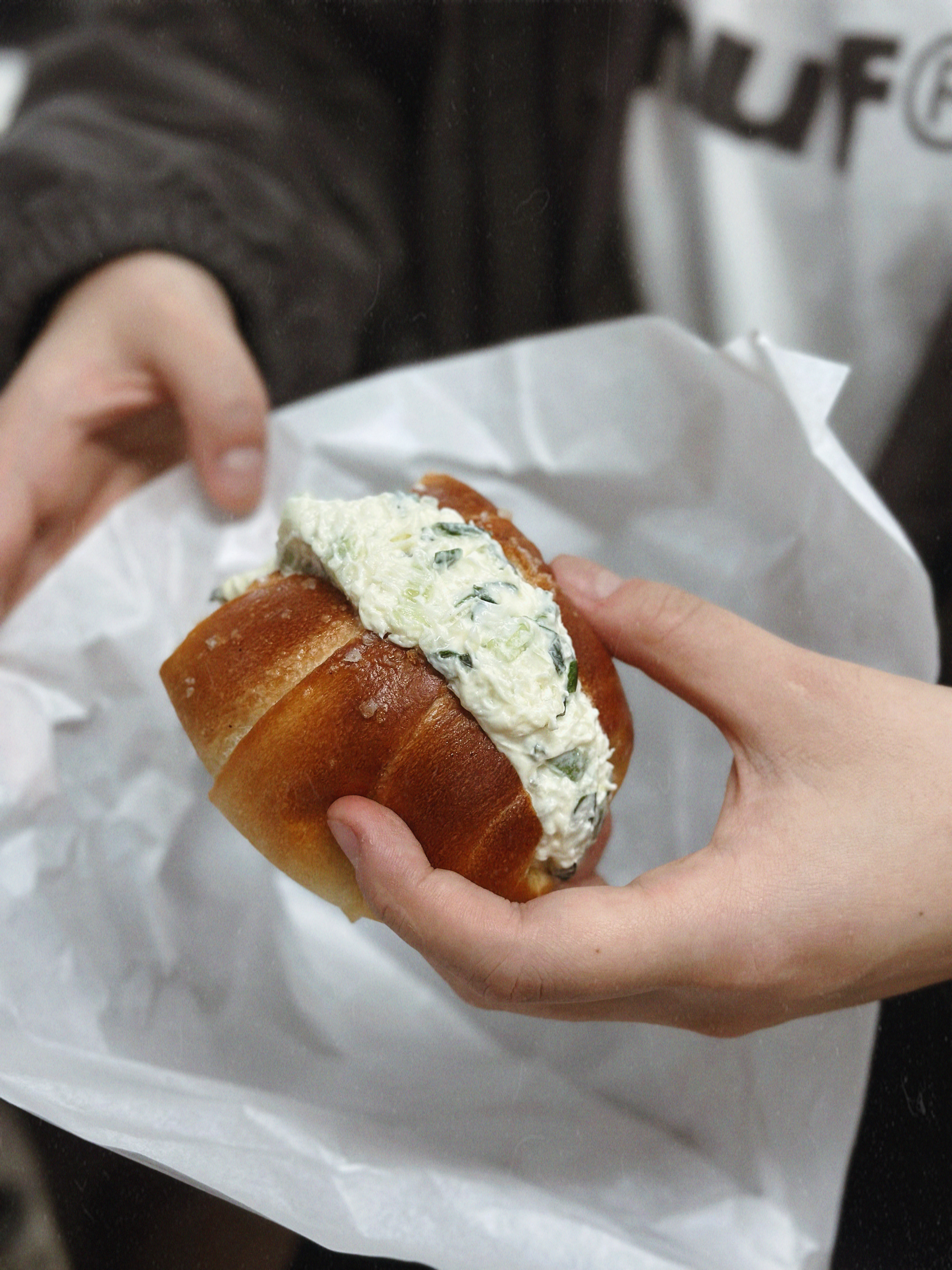 하지만! 저 솔빵의 최애 빵은 따로 있었으니, 바로 대파크림치즈소금빵이었어요. 3,700원이란 가격이 전혀 아깝지 않을 만큼, 안에 크림치즈 필링이 아주 듬뿍 들어있어서 한 입 먹는 순간 “이거다!” 싶었답니다. 달콤함과 짭조름함이 진하게 느껴져서 커피랑 같이 먹으면 그야말로 환상 조합!