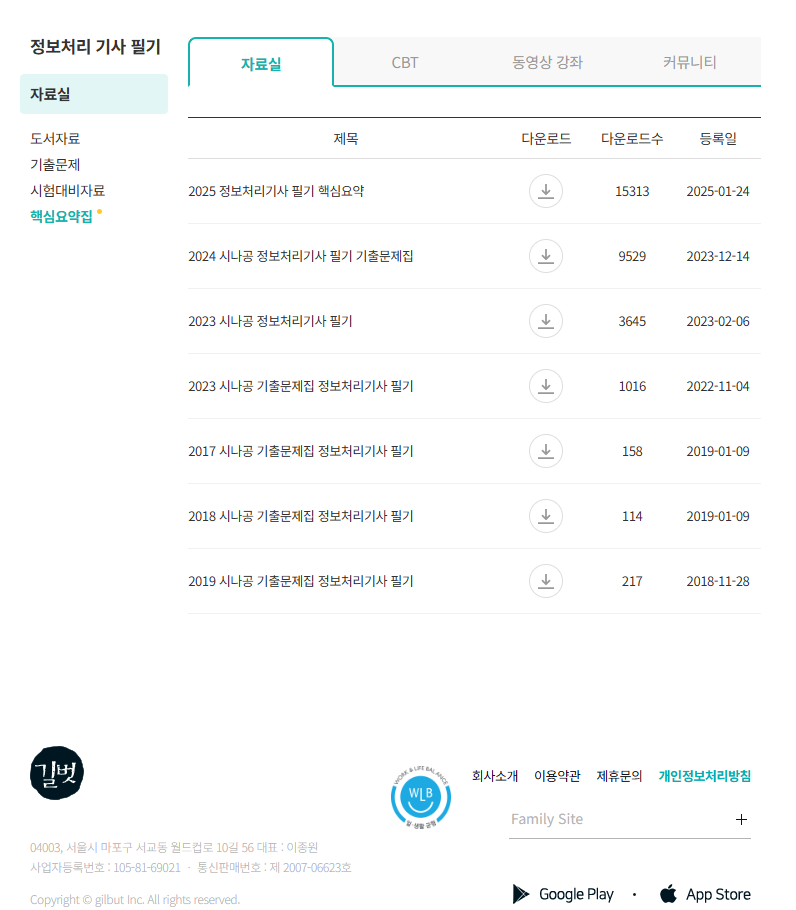 시나공 공식 홈페이지 (https://www.sinagong.co.kr/)에 들어가면 “자료실”에서 핵심 요약 PDF 자료들을 내려받을 수 있어요. 회원가입은 간편하게 네이버, 카카오, 구글 등으로 가능하고, 로그인만 하면 다양한 PDF 파일들을 이용할 수 있습니다.