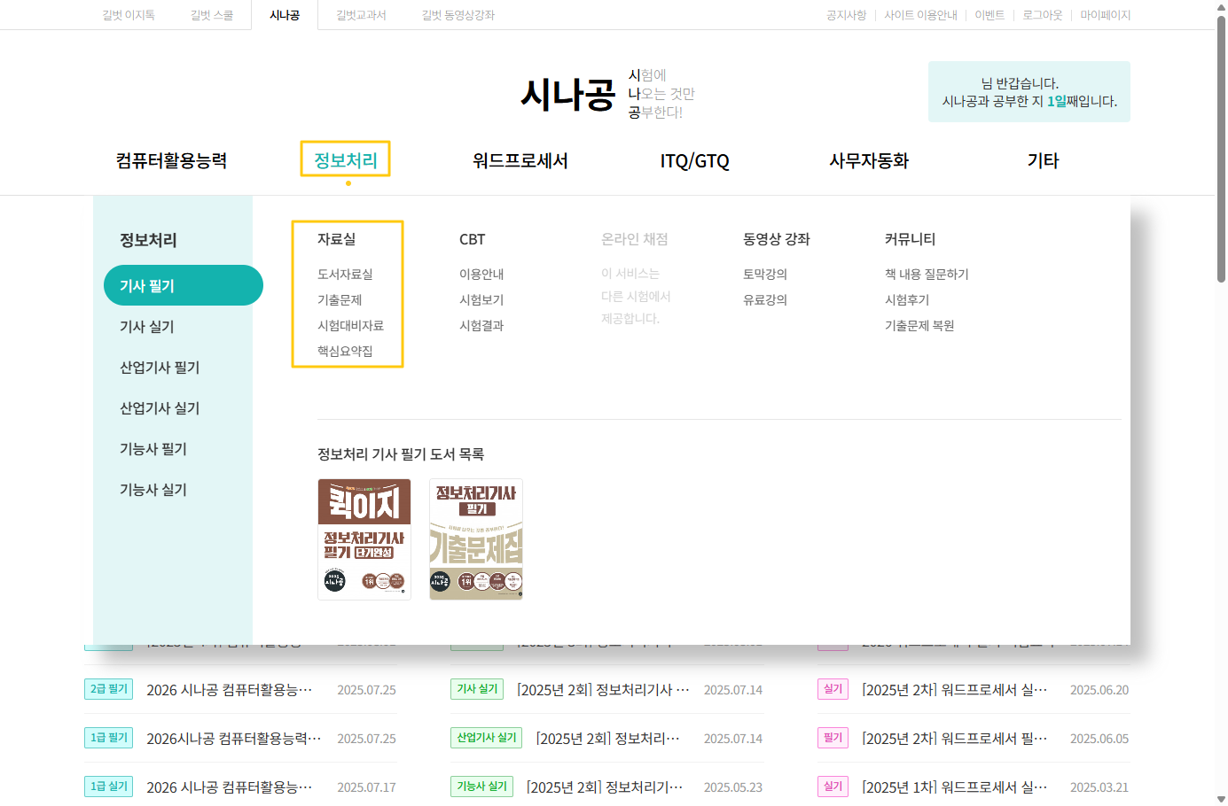 저는 주로 시나공 교재를 활용하고 있어요. 실기 때는 퀵이지 정보처리기사 실기 단기완성 책을 사용했구요! (1회독만 함ㅎ)