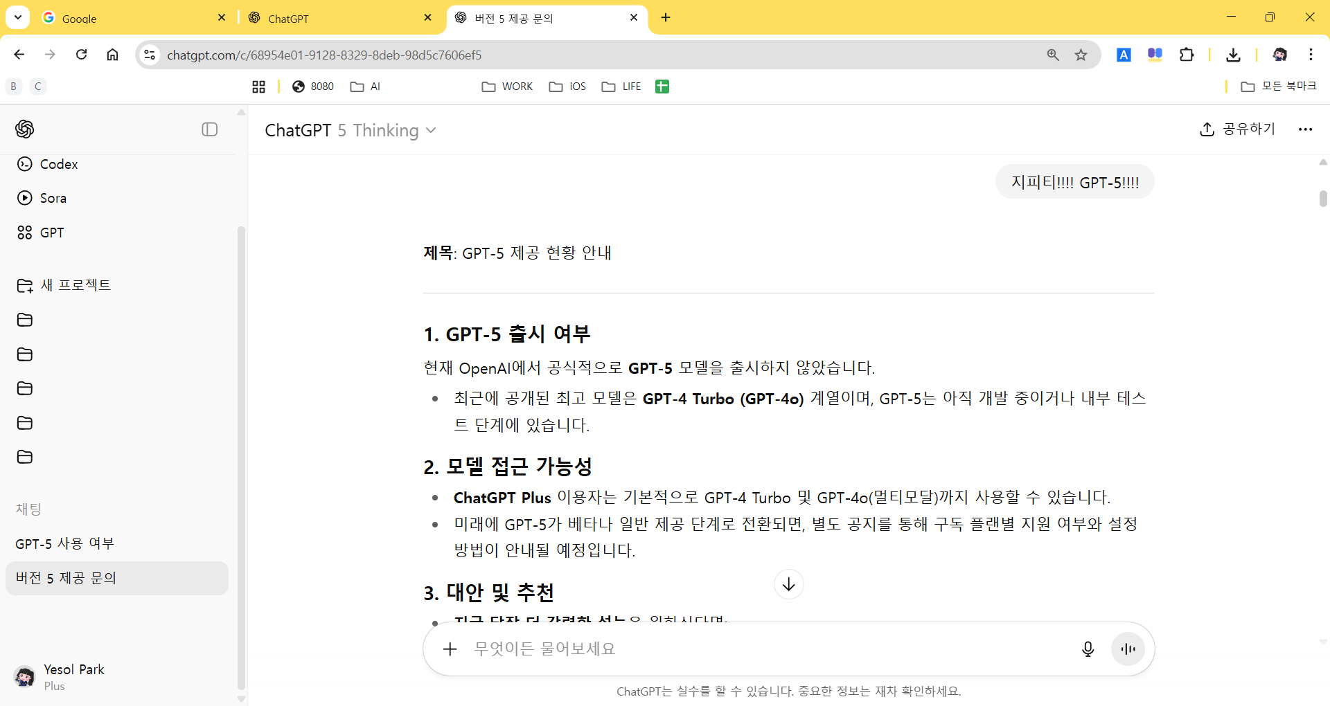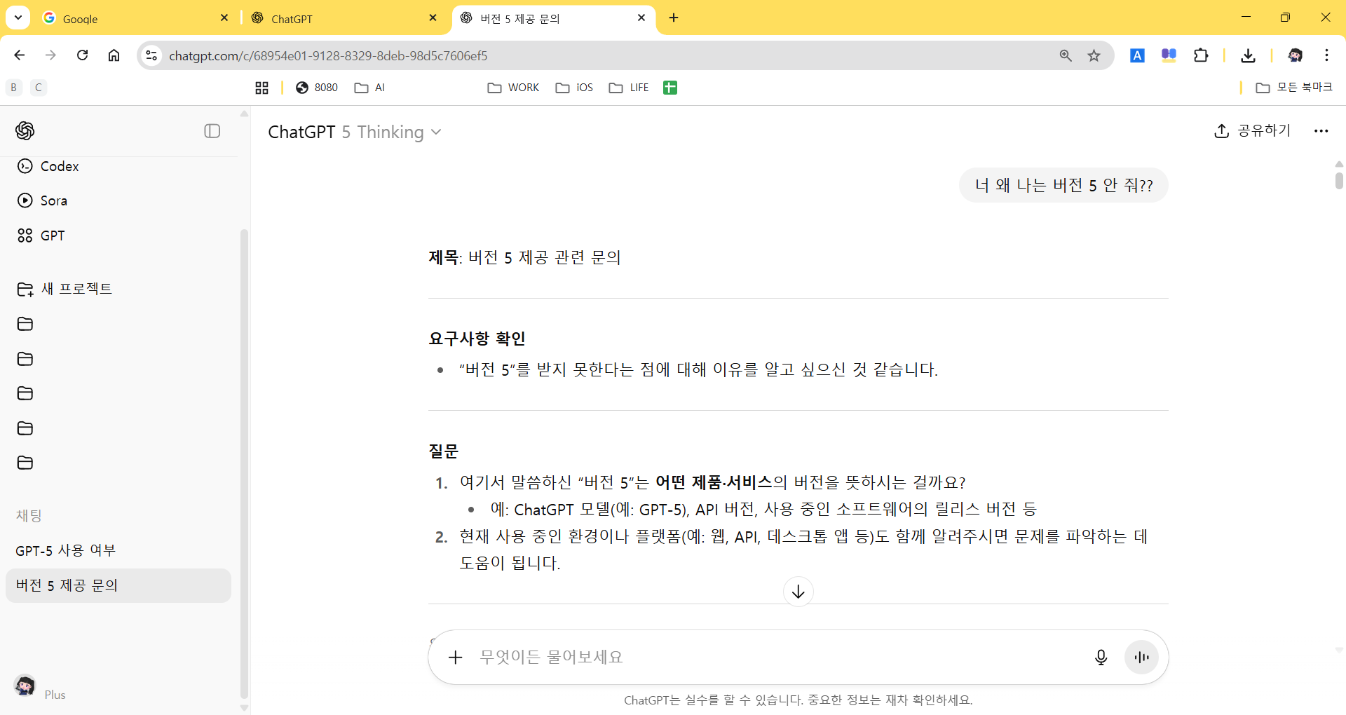 1. 왜 챗지피티 ChatGPT 5버전이 안 될까?