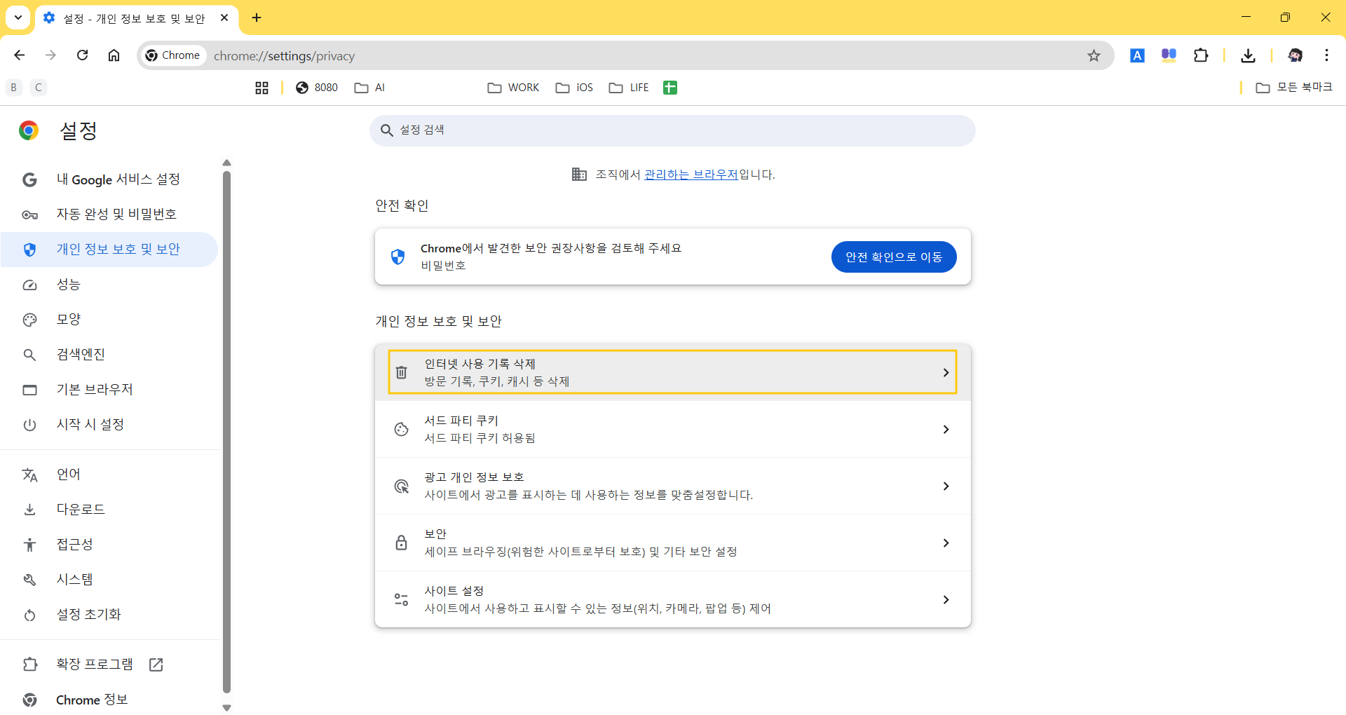 3. 두 번째 해결 방법 – 인터넷 사용 기록 삭제(기본)