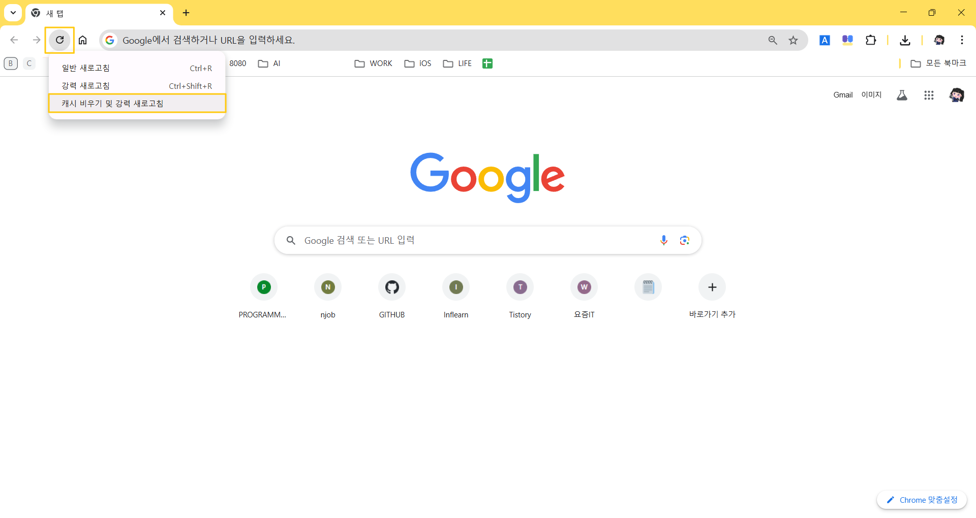 2. 첫 번째 해결 방법 – 캐시 비우기 및 강력 새로고침