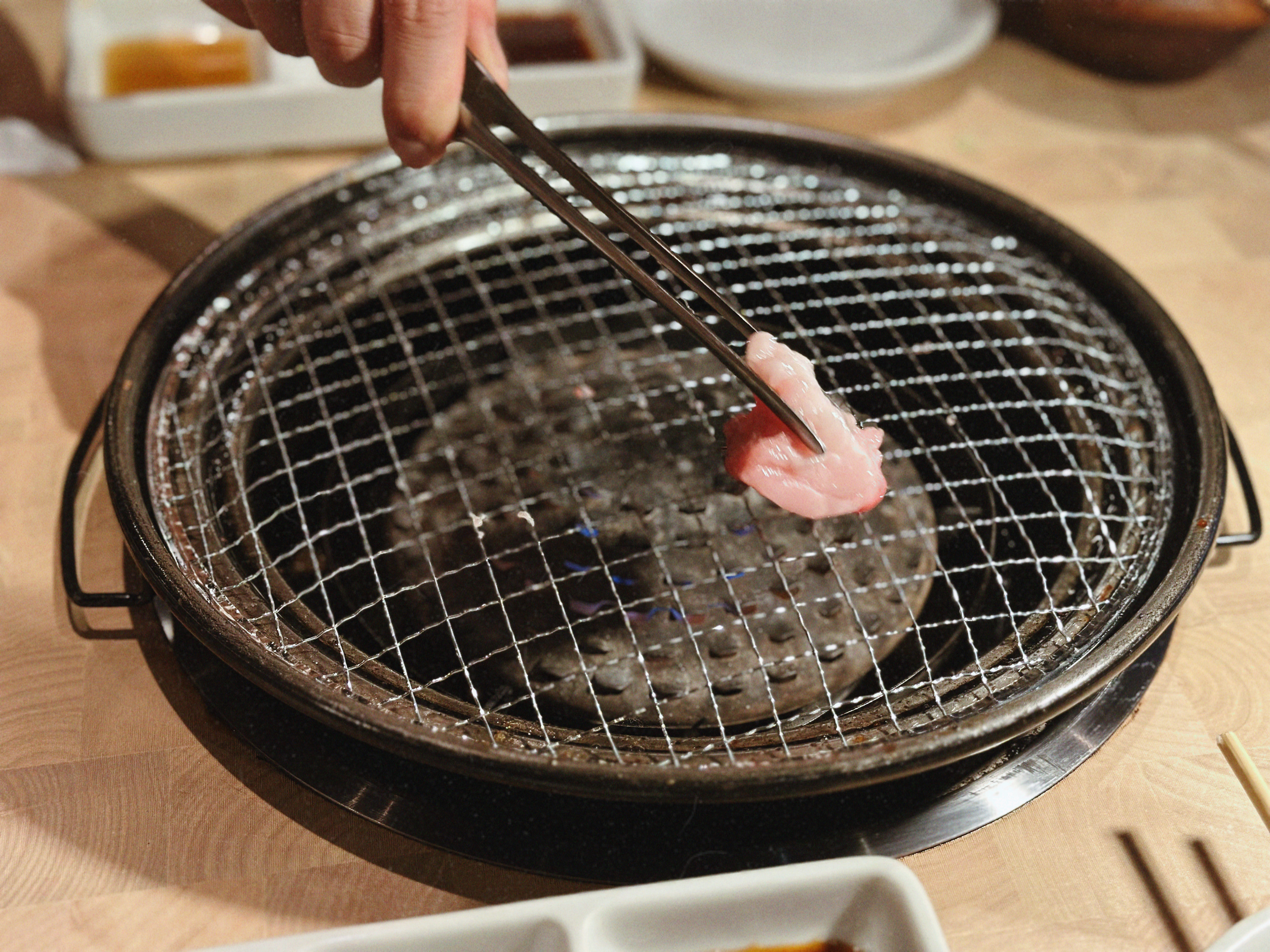 은 거짓말이고~ 소고기 지방을 주세요. 불판에 열이 올라왔다 싶으면 샥샥 발라 기름을 내줍니다!