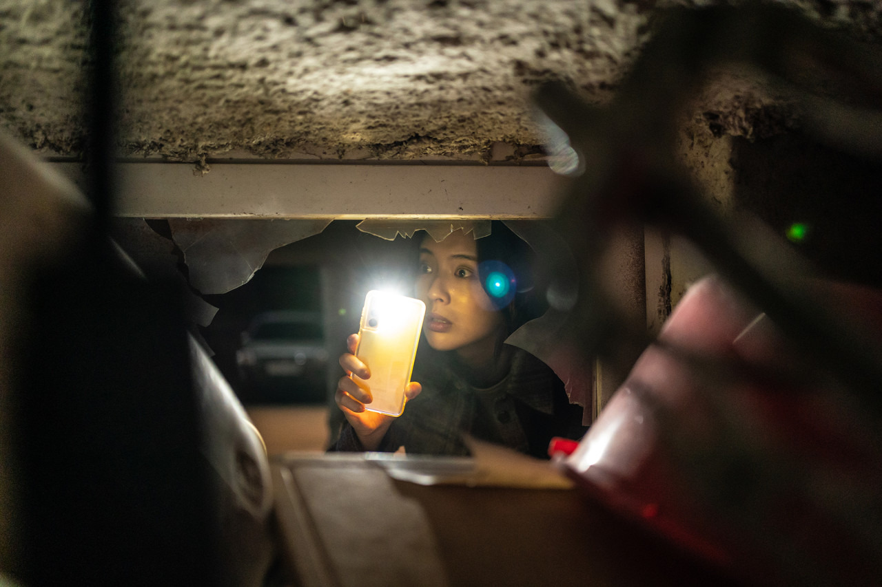 낡은 엘리베이터의 떨림, 복도 끝에 덜 켜진 형광등, 현관문 아래로 스며드는 발자국 쿵 소리까지, 일상 속에 섞인 생활 소음을 집요하게 확대하죠. 초반부는 사람 대 사람의 긴장을 섬세하게 쌓습니다.