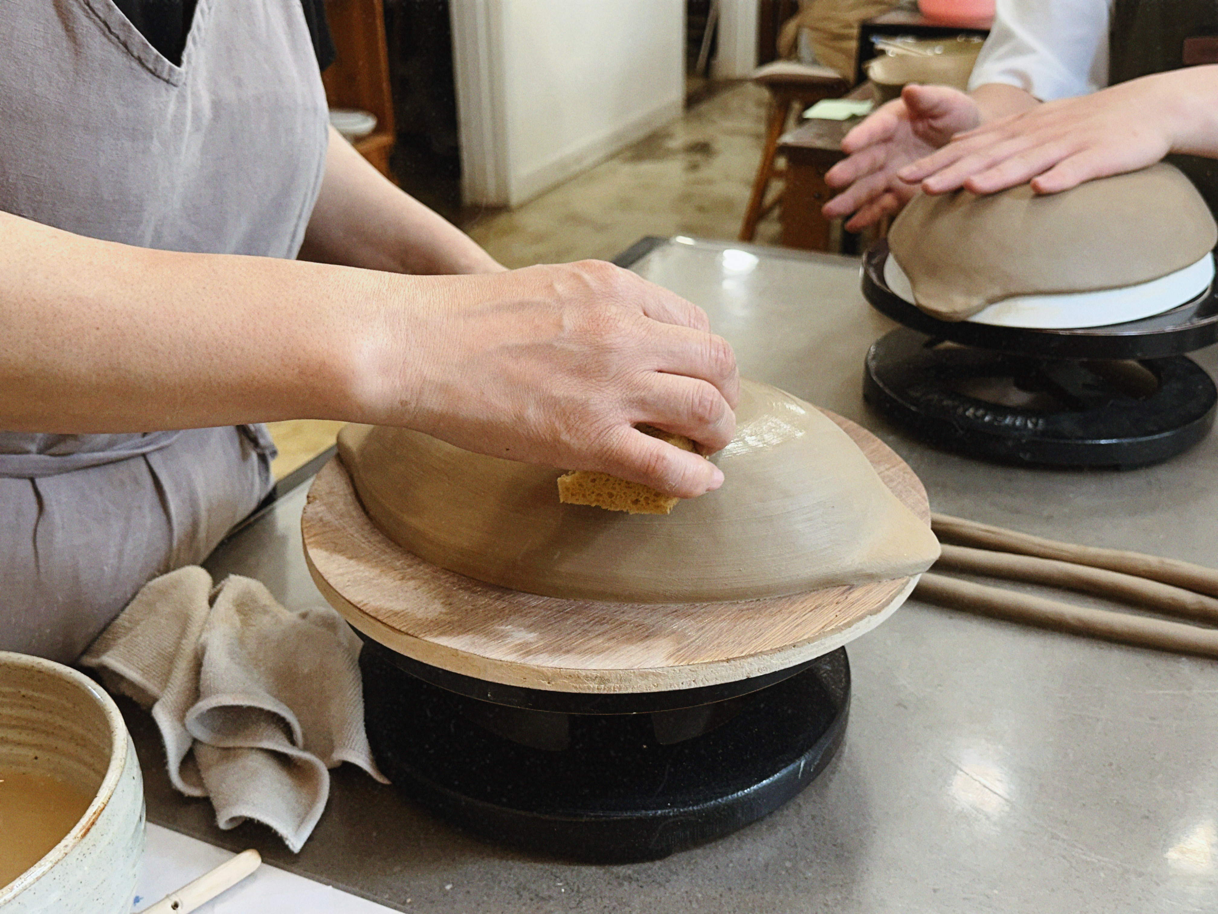 특히 초보가 많이 하는 실수인 ‘과도한 물 사용’과 ‘불균일 두께’를 즉시 잡아주셔서, 결과물이 기대 이상으로 탄탄하게 완성됐어요. 핸드빌딩은 서두를수록 표면이 무너져요. “5분 더 천천히, 대신 크게 한 번에”라는 선생님 말처럼, 급하게 문지르기보다 기다렸다가 스펀지로 살짝— 정리하는 게 훨씬 깔끔합니다.