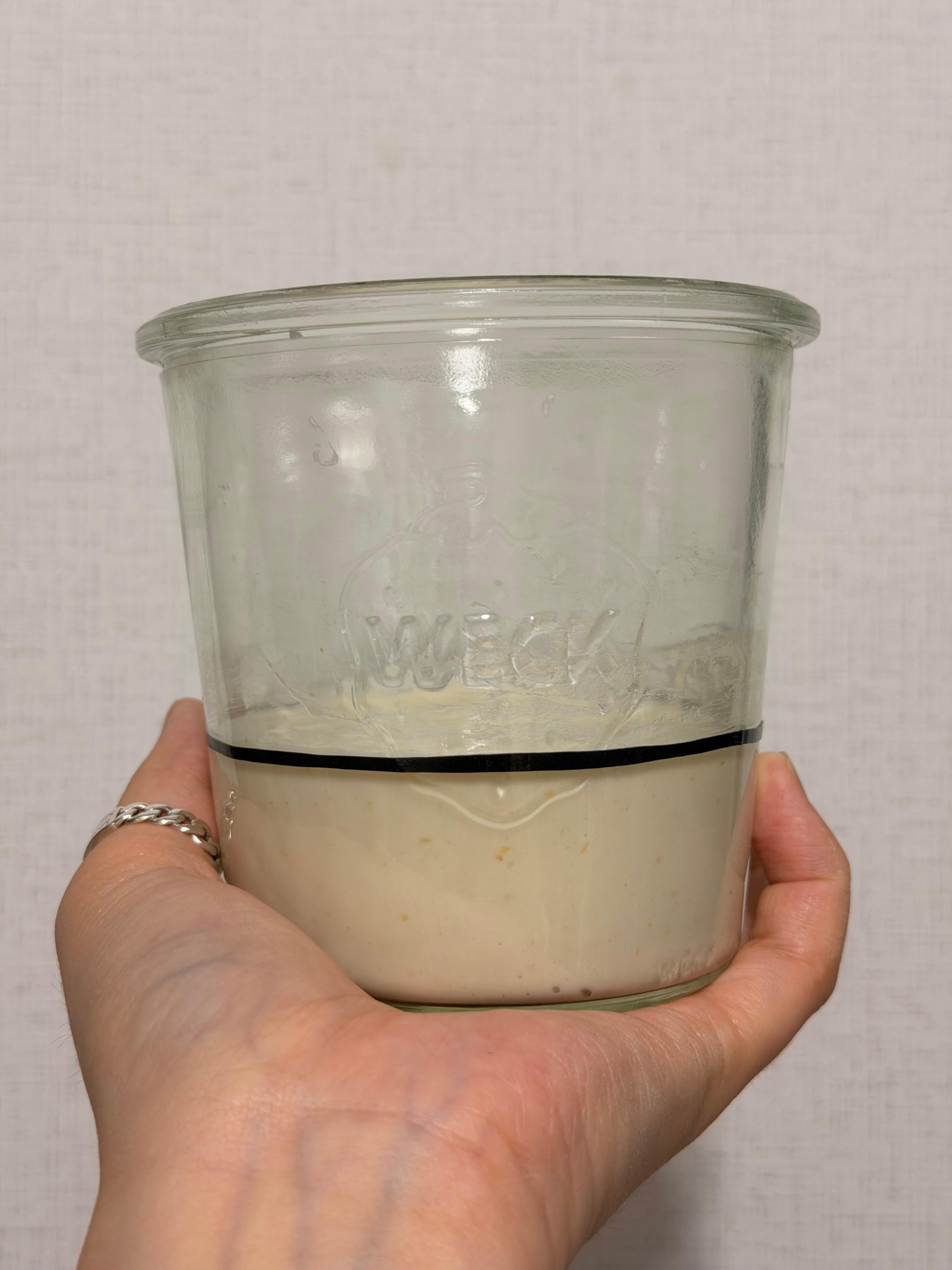 그리고 유리병은 WECK 742 유리병, 용량은 580ml인 유리병 사용하고 있습니다. 평소에 파스타 삶아서 소분해놓을 때 사용했는데, 르방 만들 때는 이 유리병이 최고인 것 같아요 ㅎㅎ 👍🏻