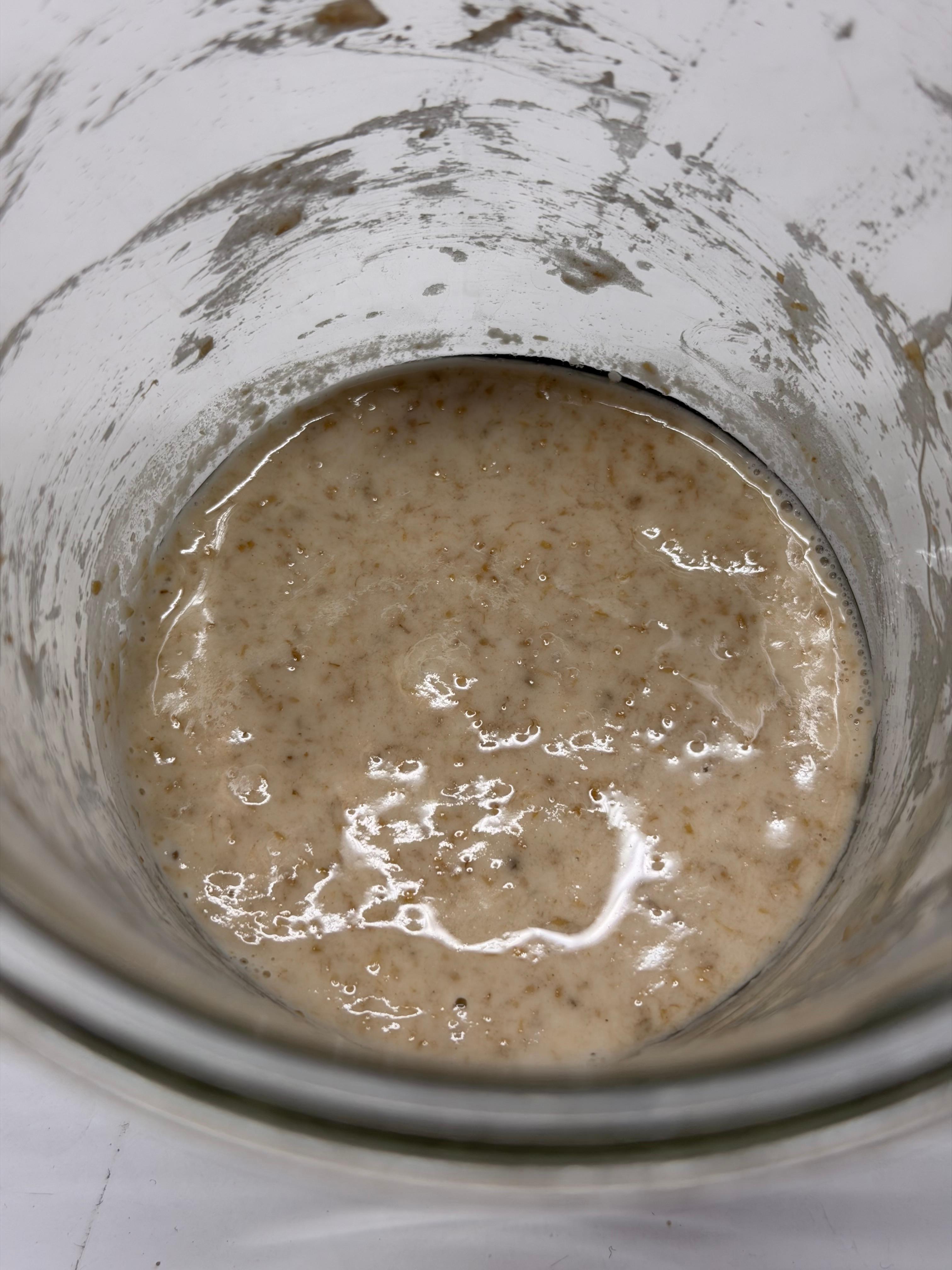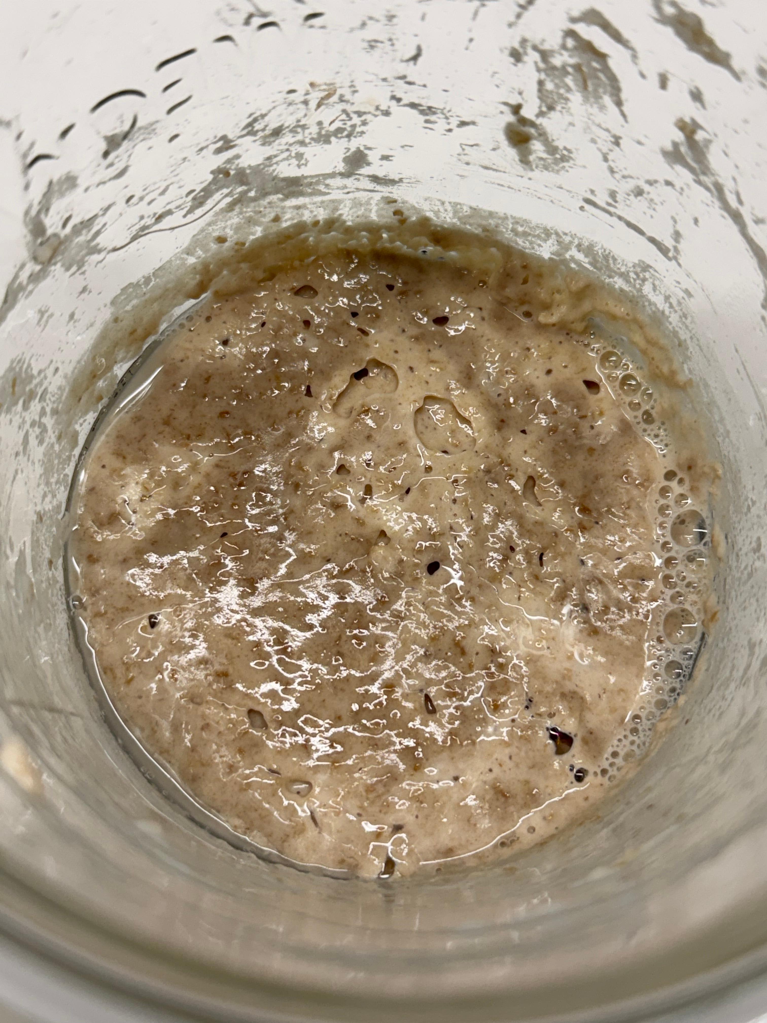 가장 처음에 섞었을 땐, 물과 통밀가루 20g씩 넣고 1:1로 섞었습니다. 과연 부풀 수 있을지 반신반의 하는 중... 🫤