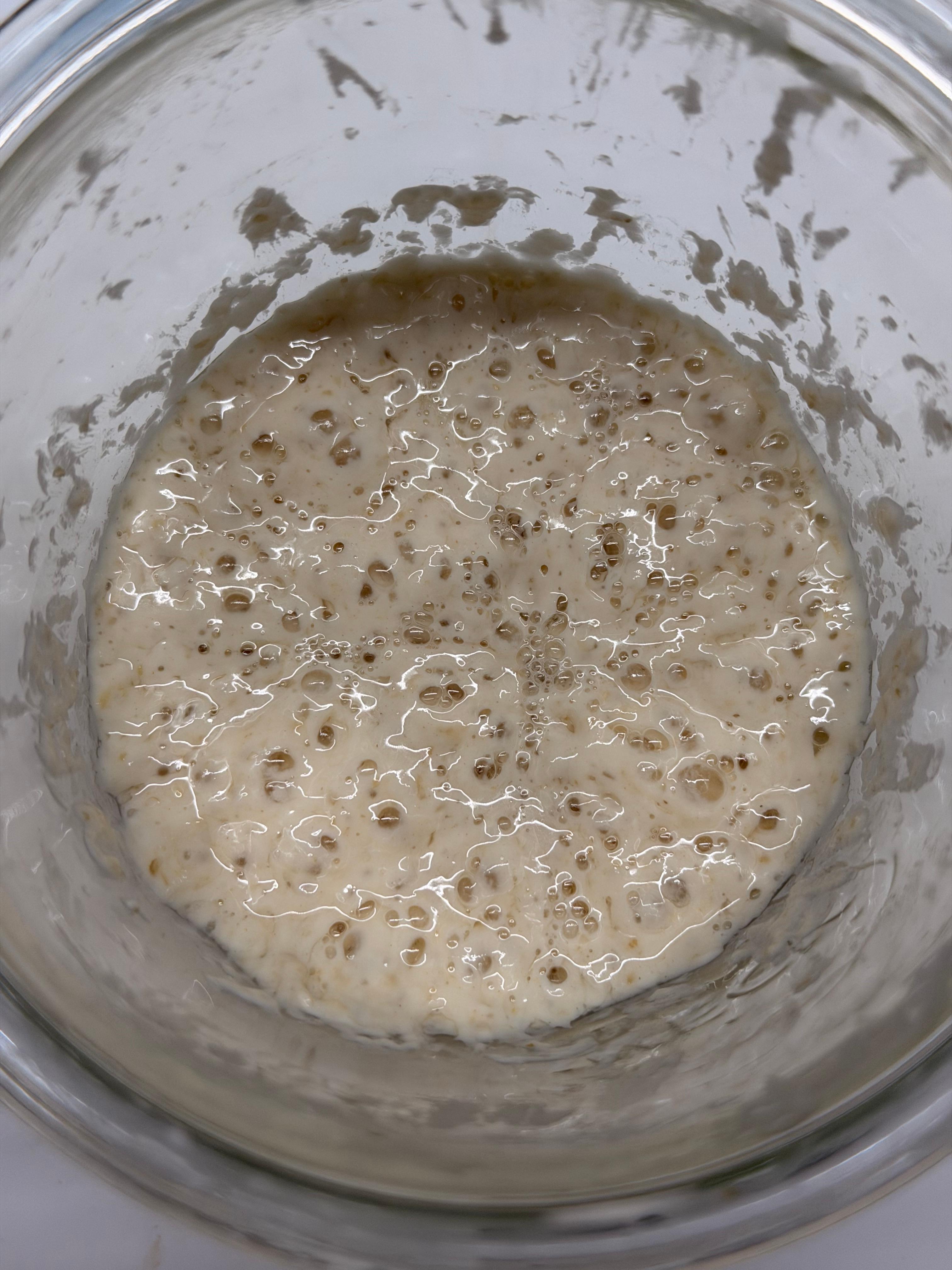 세 번째 리프레시로, 한 절반 정도를 버리고 물과 강력분을 1:1로 30g씩 넣었습니다!